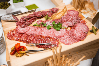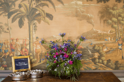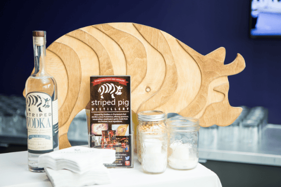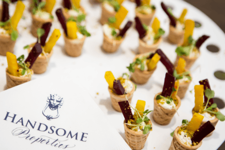 The signature cocktail of the evening was called Hello Handsome!, made with Striped Pig Vodka, Citrus, Blueberry, and Lavender. The indigo color of the drink matched the Handsome Properties color and was quite tasteful. The Ice Sculpture was beautifully designed with our company logo of the lion head doorknocker that was the centerpiece of the raw oyster & shrimp bar.