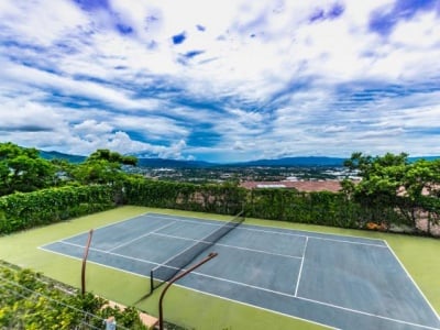 All on one floor, the villa accommodates 4 bedrooms, 5 full bathrooms, and 1 half bathroom. Featuring a modern, open floor plan, buyers can expect high ceilings, open terraces, a pool and gardens. The kitchen is fully equipped with high-end appliances. This property also includes a tennis court with extraordinary views from the hilltops of Costa Rica.